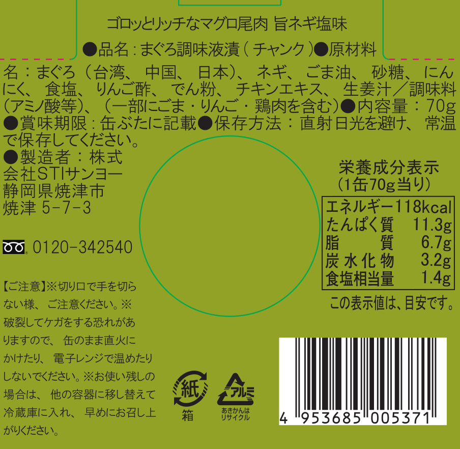 - ゴロッととリッチなマグロ尾肉旨ネギ塩味