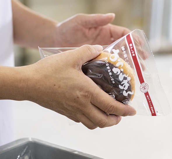 - ふじせいぱんの「ようかんぱん」は、第一回全国ご当地パン祭りにおいて、全国の有名無名ご当地パンの中から、来場者人気投票で堂々の3位を獲得した、全国唯一無二のパンです。昭和の中ごろに発売されてから60年、和洋三甘味(つぶ餡・こし餡・バニラクリーム)を用いたキャッチーなその姿は、見てよし食べてよしを追求し続けた昔と変わらぬ職人の手作り。三甘味を用いながらも、パン生地との相性や、なめらかな羊かんの厚み、そして中央の穴に絞るクリームの量など、細部にもこだわり、全国のあんこ好きのお客様に支持される美味しさです。