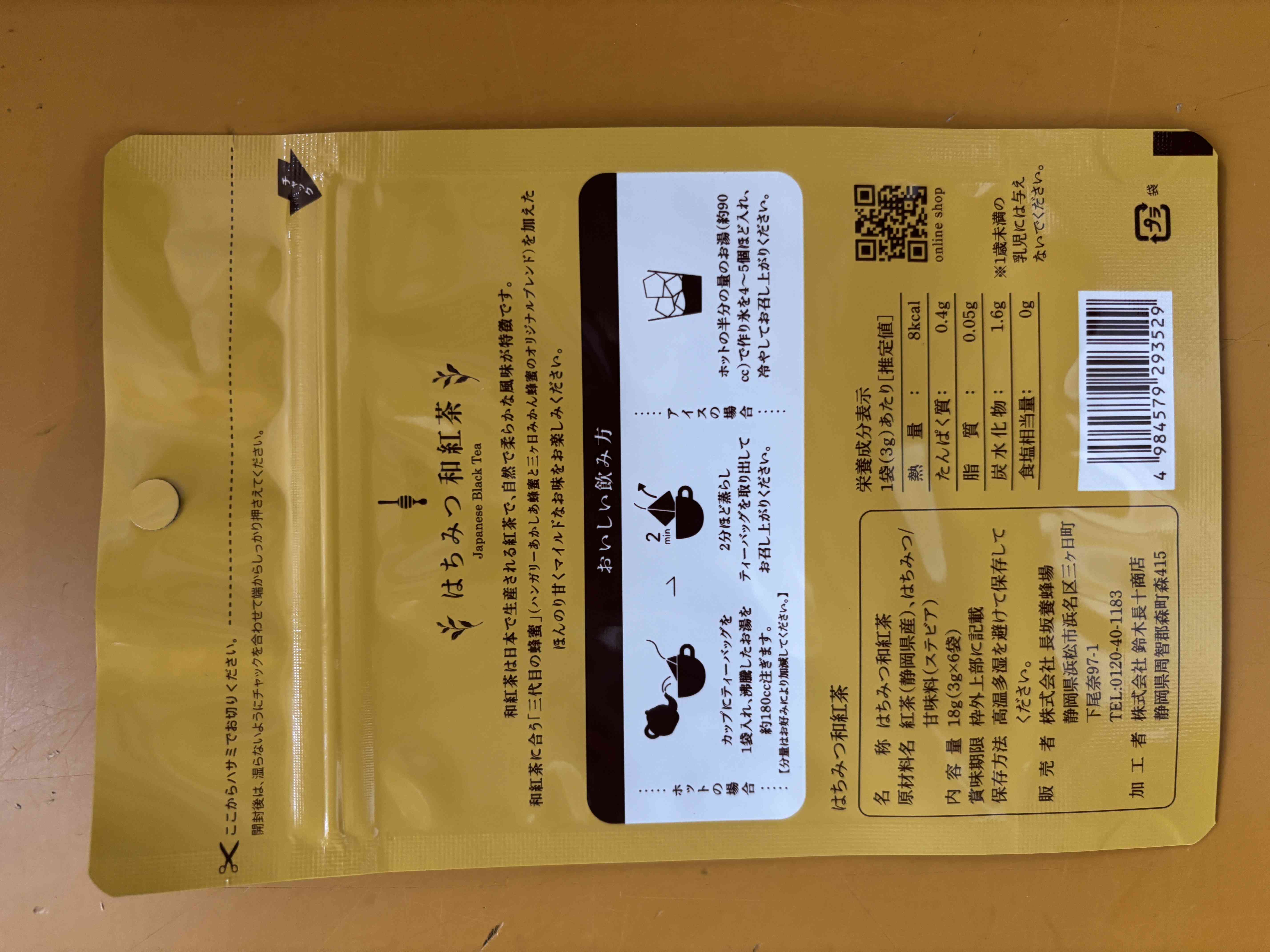 はちみつ香る、和紅茶。静岡県産はちみつと茶葉使用。