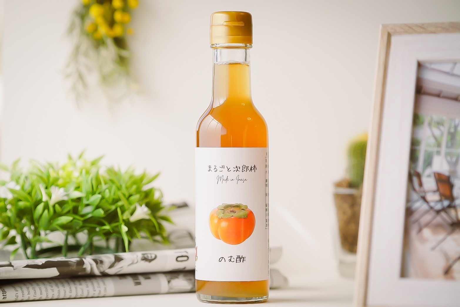 穀物酢に比べてツンとせずクセが少ないのが特徴です。次郎柿のさっぱりとした味わいを活かして仕上げています。