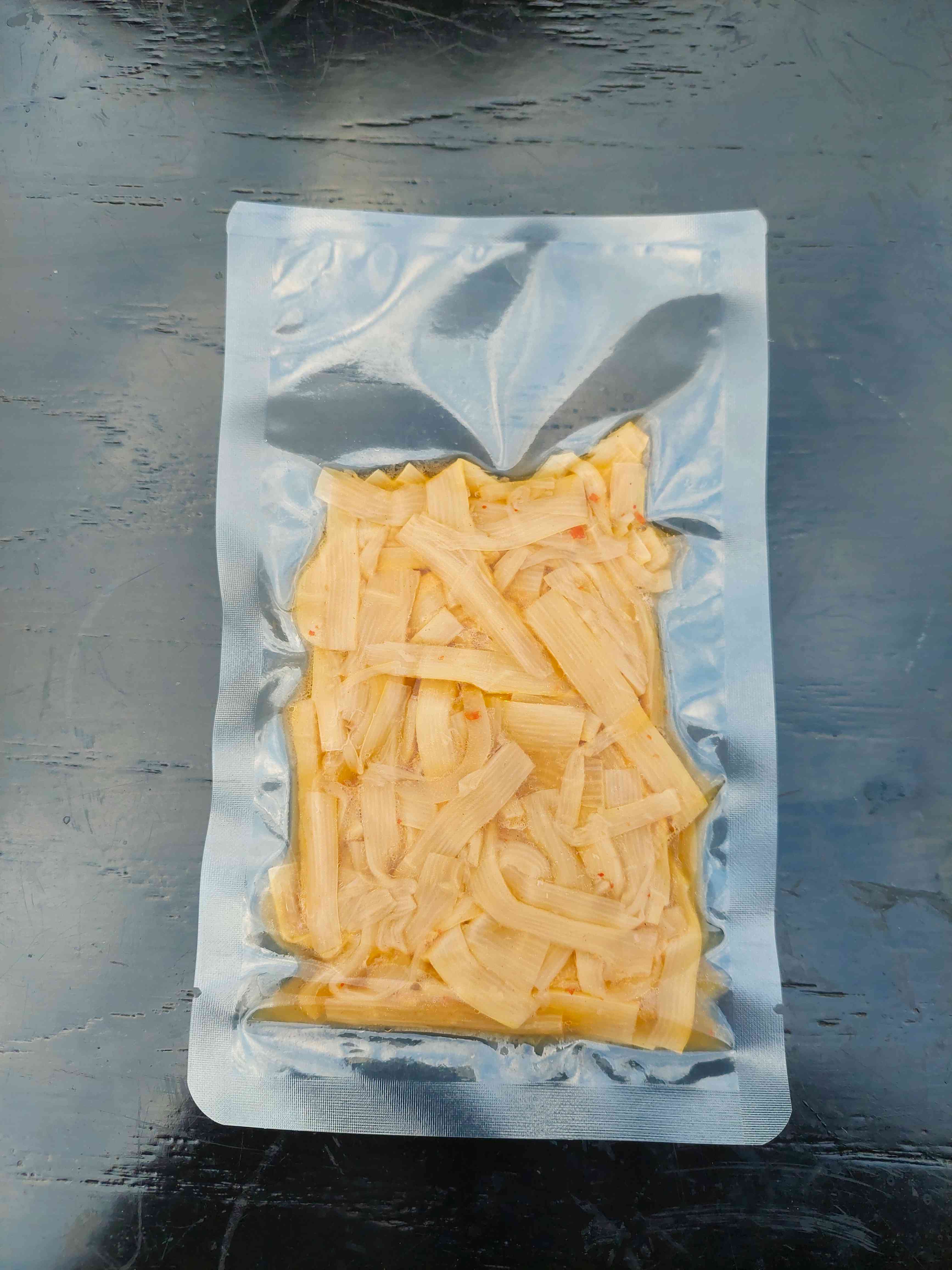 薪とかまどで茹でたタケノコに ごま油と唐辛子で丁寧に仕上げました。