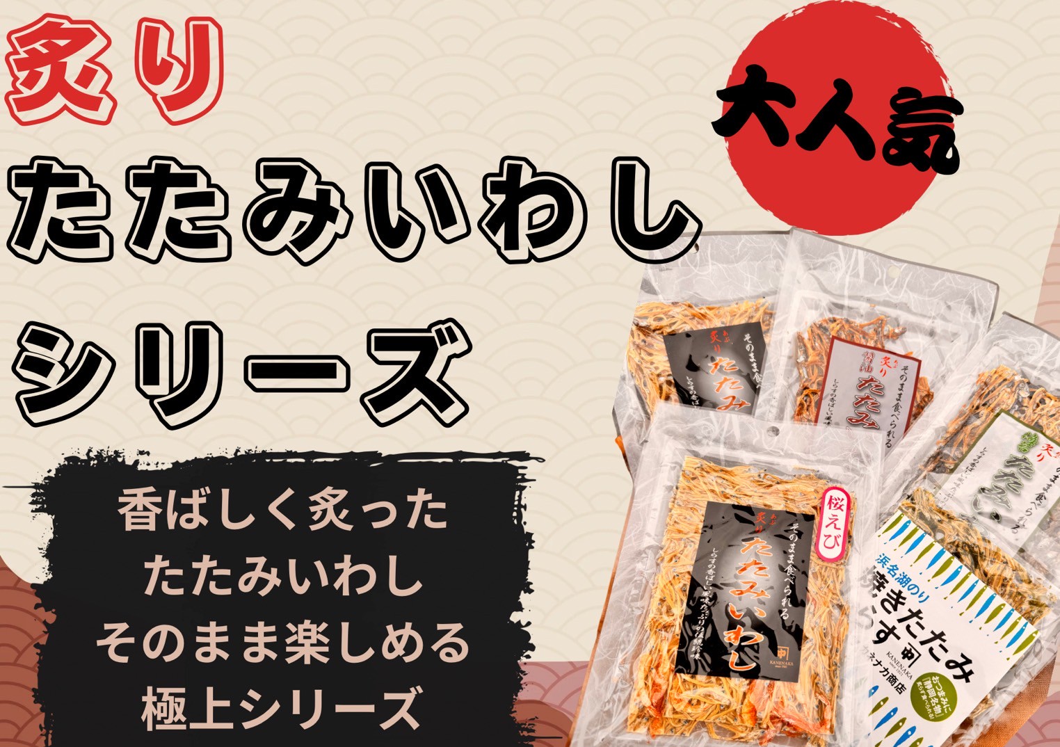 - たたみいわしに醤油たれを付けて焼き上げ、そのままお菓子感覚で食べられる商品です。醤油の香ばしさとたたみいわしの相性の良い風味が特徴です。おやつやおつまみ、料理のトッピングとしてもご使用できます。たんぱく質、カルシウムが豊富なので、お子様やご年配の方にも喜ばれております。