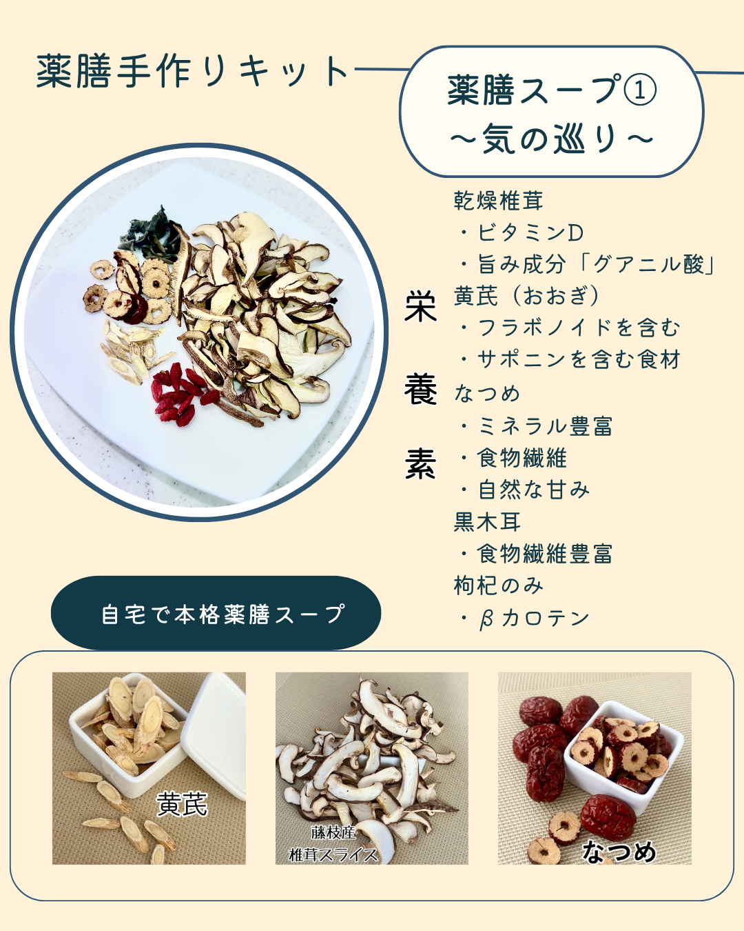 ・「おいしさ」へのこだわり 「薬膳=苦い・薬臭い」というイメージを覆す、乾燥椎茸、鶏にくとお塩だけで、旨味と素材の美味しさが味わえる